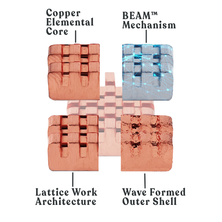 The power of copper is at the core of our products and is what makes our BEAM Technology work. Copper is naturally conductive, due to its positive ions. Copper is missing an electron and that missing electron allows copper to exchange electrinos giving it it’s electrical conductivity. This conductivity is perfect for dealing with EMF, which can be naturally conducted through the material seamlessly.